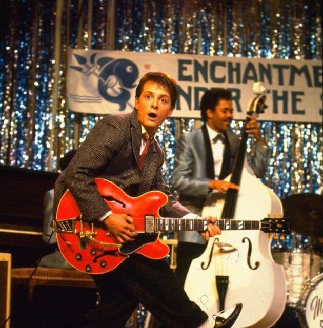 Filmin başrol oyuncusu Marty McFly rolündeki Michael J. Fox, filmin en ikonik sahnelerinden birinde ES-345 Cherry Red gitar çalıyor.