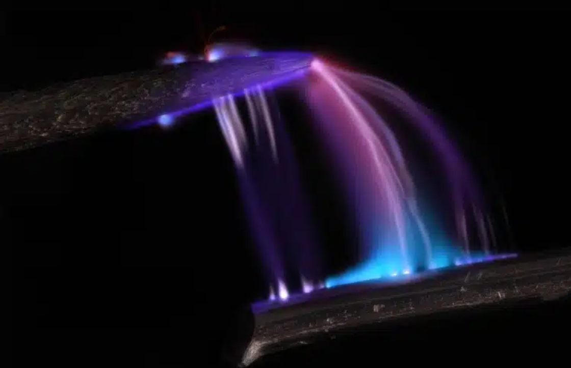Pim ve tel için görüntü istifleme, elektrik arkları için uzun pozlama ile birleştirildi, 10X (Objektif Lens Büyütmesi)