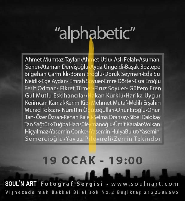 19 Ocak’ta Soul’n Art Galeri’de gerçekleşecek “alphabetic” karma fotoğraf sergisi sizleri bekliyor.