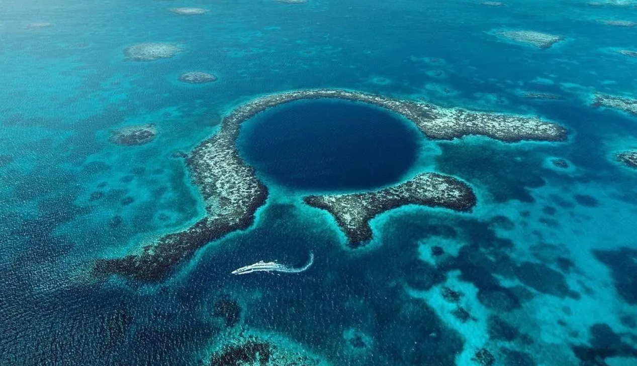 1971’de, efsanevi Fransız deniz gezgini Jacques Cousteau, Belize’deki bir çukura gitti ve kraliyet mavisi suları dünyanın en iyi dalış noktalarından biri olarak duyurdu. İngiliz bir dalgıç tarafından Büyük Mavi Delik olarak adlandırılan dairesel su alanı, uzaydan görülebiliyor ve en deneyimli dalgıçları bile hayrete düşürecek kadar etkileyici su ve jeolojik harikaları içeren bir batık mağaralar ağını dünyaya sunuyor.