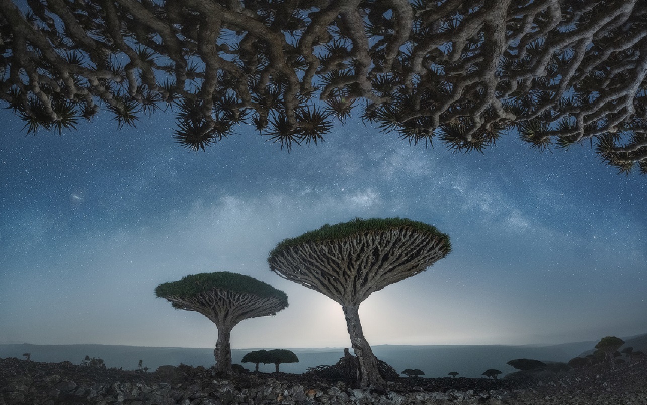 Rus fotoğrafçı Daniel Kordan, dünyanın dört bir yanındaki olağanüstü ortamları bulmakta usta bir fotoğrafçı. Birkaç ay önce Japonya’nın ateş böceği çiftleşme mevsiminin bu göz kamaştırıcı serisini paylaşmıştı. Şimdi de Sokotra takımadalarına yaptığı son gezi de benzer şekilde büyüleyici fotoğraflar sunuyor. Guardafui Kanalı ile Arap Denizi arasında yer alan ücra ada, dünyanın en enteresan görünümlerinden birine sahip, yaprak dökmeyen bir tür olan ejderha kanı ağaçlarıyla dolu.
