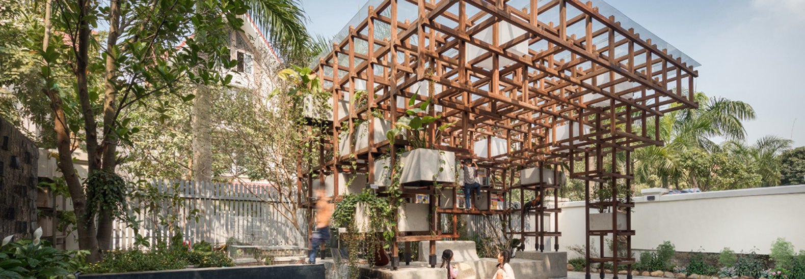 Hanoi’deki yeni VAC kütüphanesi, (Vietnamca dilinde bahçe, gölet ve kafes kelimelerinin kısaltması) kitapların yanında, koi balığı ve yeşilliklerle dolu. Vietnamlı firma Farming Architects, çocuklara kentsel tarım hakkında bilgi vermek için etkileyici bir akuaponik sistemi olan, yeni bir açık hava kütüphanesini inşa etti.