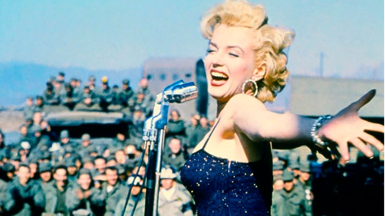 Hollywood yıldızı Marilyn Monroe’nun 22 Şubat 1954’te dört günlük Kore turunun ilk gösterisinde şarkı söylerken çekilmiş fotoğrafları renklendirildi. Üzerinde çok tartışılan dekolte mor kokteyl elbisesini giyiyordu. Sahne korkusuna rağmen verdiği konserlerde giydiği elbise için gazetecilere, “Gösteri için uygun olan, getirdiğim tek şey,” dedi.