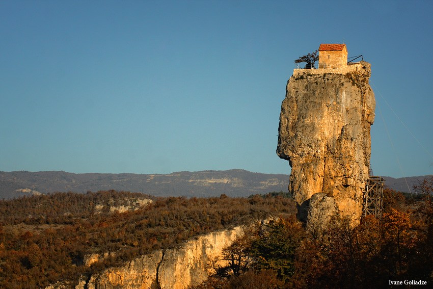 - yüzyıldan itibaren sütun tepesinde yaşayan münzevi kişiler tarafından kullanıldığı bilinmektedir. Restorasyon tamamlandığında Fr. Maxim, Katskhi’nin tepesinde bir münzevi keşiş olarak ikamet etmeyi umuyor.