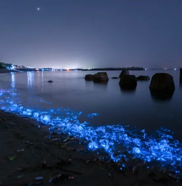 Karanlıkta parlayan biyolüminesans gelgitler dünyanın her yerinde görülebilir. Bazen bu parlayan sular okyanusta asılı duran minik pırıltılı yıldızlara benzer. Bu fosforesans genellikle gelgitin içeri ve dışarı doğru yuvarlanmasıyla ya da suda hareket eden bir teknenin, balığın veya parmağın hareketiyle sarsıldığında parlayan suda asılı kalan alglerin bir sonucudur. Ateş böceği kalamar ve ostrakod kabukluları gibi biyolüminesans organizmalar da bazen bu parlayan etkiyi yaratır. Işık kirliliğinin arttığı dünyamızda gecenin güzelliği genellikle insan yapımı ışığın parıltısıyla gölgelenir ama yakından bakarsanız biyolüminesansın muhteşem parıltısını görebilirsiniz.