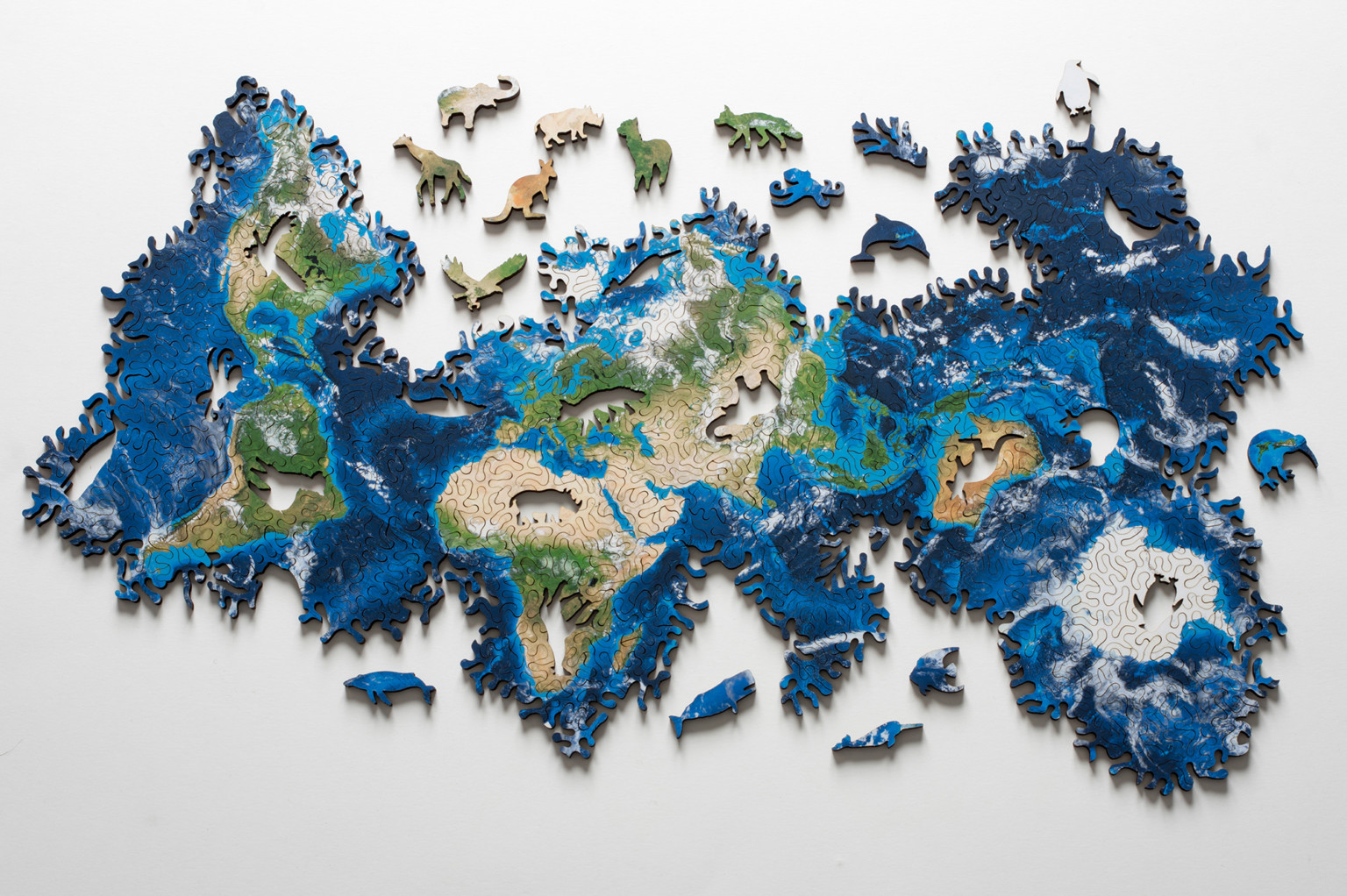 Puzzle sihirbazları Nervous System, iki yeni akıl almaz bulmacada gezegenimizi ve üzerindeki yaşamın geniş özelliklerini keşfediyor. The Infinite Earth adlı Puzzle 442 ve Infinite Moon da 186 parçadan oluşuyor. Puzzlelar neredeyse sınırsız sayıda yeniden düzenlenebiliyor. Büyünün arkasındaki matematik, geleneksel sınırlar olmaksızın bir gezegenin topolojisini uygulayan ikozahedral bir harita projeksiyonu. Nervous System’in bloğunda, puzzle’dan gezegenin yer değişiminin ardındaki matematikle ilgili daha fazla şey öğrenebilirsiniz. Nervous System, Somerville atölyelerinde huş ağacından yapılan kontrplaklarla puzzle’ı tek tek basıyor ve lazerle kesiyor.