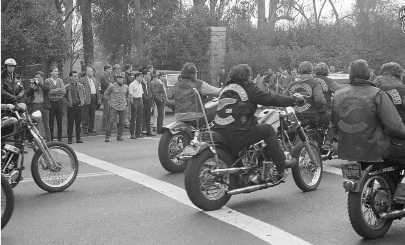 görsel: Cehennem Melekleri üyeleri, 1966 Bettmann’da motosikletleriyle köşeyi dönüyor Getty Images aracılığıyla