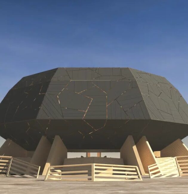 Yapının ana unsuru geçici sakinleri çevredeki manzarayla bir araya getiriyor gibi görünüyor ve Black Rock Çölü’nde bulunabilen volkanik kayalardan esinlenen bir yedigen şeklinde. Ahşaptan yapılan tasarım, mağaralar, kayalar ve dağlar gibi organik barınak yerlerini çağrıştırmayı amaçlıyor. Yapının yedi girişi festivale katılanları içsel bir şifa yolculuğuna yönlendirmeyi umarak kederin yedi aşamasına atıfta bulunuyor