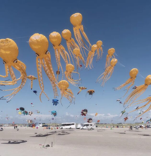 Bu ayrıntılı el yapımı uçurtmalar, dünyanın en büyük uçurtma uçurma etkinliklerinden biri olan Fanø Uluslararası Uçurtma Uçuranlar Toplantısı’nda fotoğraflandı
