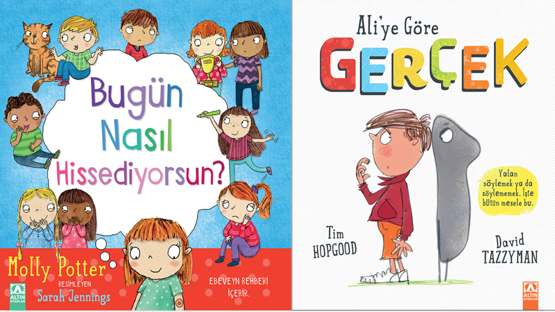 Çocuklara ebeveynleriyle birlikte farkındalık dolu maceralar sunan “Ali’ye Göre Gerçek” ve “Bugün Nasıl Hissediyorsun?” Altın Kitaplar logosuyla raflardaki yerini aldı.