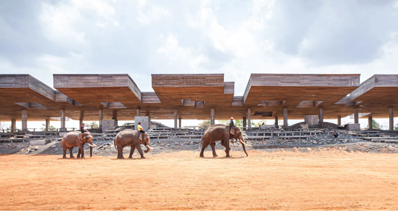 Boonserm Premthada liderliğindeki Bangkok Proje Stüdyosu, Tayland’daki “Fil Fünyası” kompleksinin bir parçası olan etkinlikler için çok yönlü bir avluyu tamamladı. Aynı firma tarafından tasarlanan bir “Fil Müzesi” nin de yer aldığı alan Kui Evi’nde filler için istikrarlı bir gelir kaynağı sağlamayı amaçlıyor. Geleneksel bir Kui evi aynı çatı altında insanlar için alan ve filler için alan içerir.