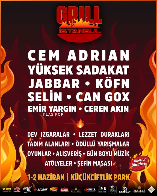 Yemek ve eğlencenin, sohbet ve müziğin ızgara kokusuyla birleştiği Grill İstanbul’un sahnesi ise iki gün boyunca Cem Adrian, Yüksek Sadakat, KÖFN, Jabbar, Selin, Can Gox, Ceren Akın ve Emir Yargın ile renklenecek. Hem ruhun hem de karınların doyacağı Grill İstanbul için biletler Biletix’te ve KüçükÇiftlik Park gişesinde!