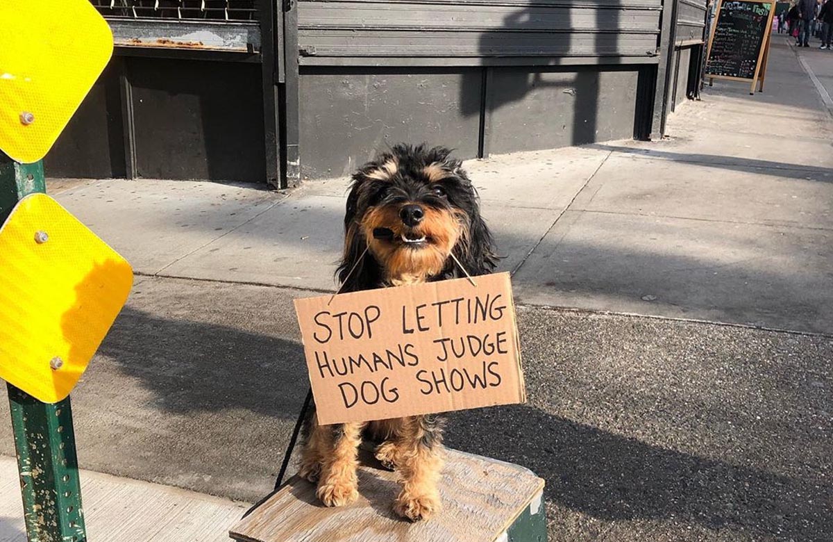 Bir Instagram sayfası üzerinden paylaşılan fotoğraflarda, ağzında taşıdığı karton parçaları üzerindeki metinlerle yaşamlarımızda canımızı sıkan birçok olayı protesto eden bu sevimli köpekle tanıştınız mı?