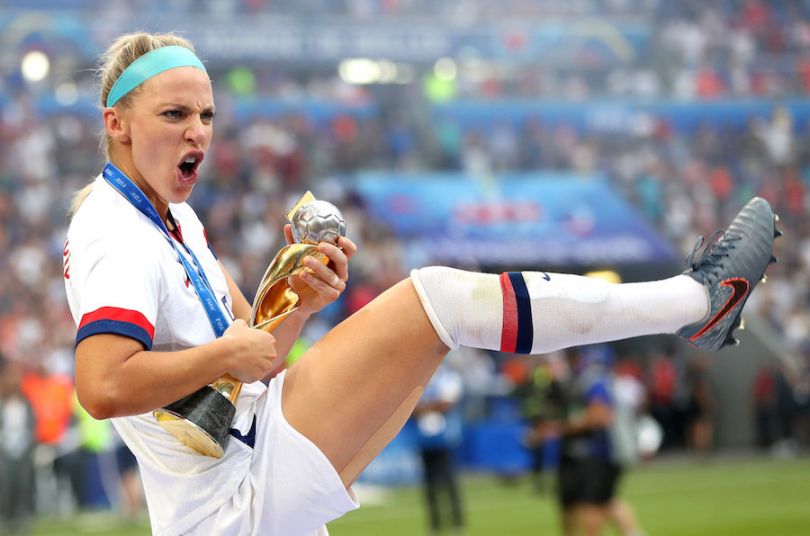 ABD takımının yarışma finalinde Hollanda’ya karşı kazandığı zafer. Bu fotoğrafta Julie Ertz Dünya Kupası ödüyle.