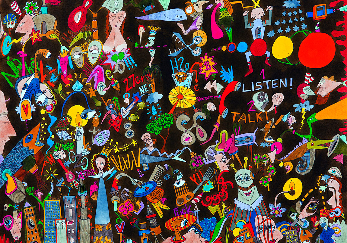Mehmet Sinan Kuran, bugün sayısı 10’u bulan ajandalarının, her gün çizim, desen ve yazı ile doldurarak hayat verdiği sayfalarında gizli kalan dünyayı, genel geçer kuralların saf dışı edildiği sonsuz bir döngünün baş rolüne koyuyor. Zihninden taşanları gündelik hayata dair imgelerle birleştirerek her şeyin mümkün olduğu yeni bir görsel evren yaratan Kuran, mekanın sınırlarını kaldırarak, tüm özgürlüğü renklere ve formlara bahşediyor.