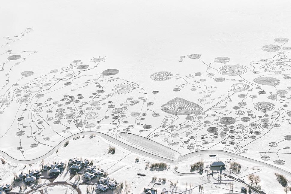 Sonja Hinrichsen’in sanatı video, performans ve enstalasyondan çevre sanatına kadar uzanıyor. “Kar Çizimleri” serisiyle tanınan Hinrichsen ayak izlerini kullanarak karla kaplı manzaralar üzerine büyük çizimler yapıyor. Bu çizimler sanatçının dünya çapında takipçisi olan topluluklarla birlikte gerçekleşiyor. Katılımcılar Hinrichsen tarafından yönlendiriliyor ve kar ayakkabılarıyla yürüyüş desen sistemleri oluşturuluyor.