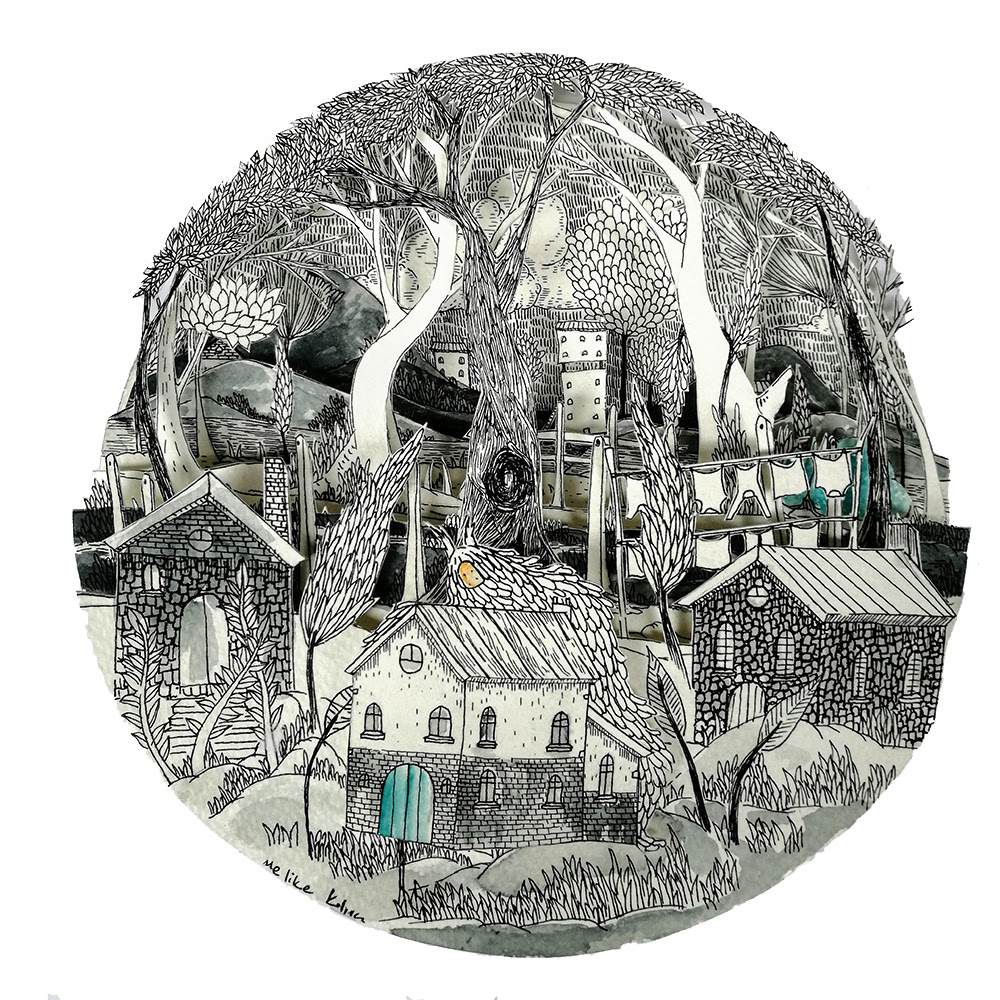 Melike Kılıç’ın “Duvarın Ötesinde Bilinmeyen Topraklar” isimli kişisel sergisi 3 Mayıs – 15 Haziran 2019 tarihleri arasında Büyükdere35 Kültür Sanat Platformu’nda izlenebilir. Melike Kılıç’ın çalışmaları, doğa ve insan arasındaki dilin çok katmanlı bir anlatımı olarak görülebilir. Sanatçı, yeryüzü kaynaklarının hiç tükenmediği, tüm güzelliklerin mümkün olduğu bir masala, insanın doğaya olan aidiyetliğine ve günümüzde betonlaşma sebebiyle meydana gelen sona dikkat çekiyor. Çalışmalarında çoğunlukla bu olgular üzerine yoğunlaşan Kılıç, “hatırlatma” kavramını da ön plana çıkarıyor. “Hatırlatmayı” bir ağacın var oluşu, bir ormanın derinliği ile ele alarak, yeryüzünün tüm güzelliklerinin bizden önce de var olduğuna vurgu yapıyor. Kılıç, çalışmalarındaki masalsı anlatımının yanı sıra, kendi için en iyi anlatım biçiminin çizim olduğunu ve bu sayede her çizginin bir kelimeye denk düştüğünü belirtiyor. Çalışmalarındaki çok katmanlılığın, bir nevi 3 boyutlu kolaj görüntüsünü elde etmesinin ötesinde ayrı bir üsluba da dikkat çekerek kendini “katı”1 olarak tanımlıyorum. İfadece biçiminin derinleştiği, insan ve doğa arasındaki ilişkiyi kavramsal çerçevede masalsı bir anlatımla ele alan Melike Kılıç’ın ikinci kişisel sergisi “Duvarın Ötesinde Bilinmeyen Topraklar”, 15 Haziran’a kadar Büyükdere35 Kültür Sanat Platformu’nda görülebilir.