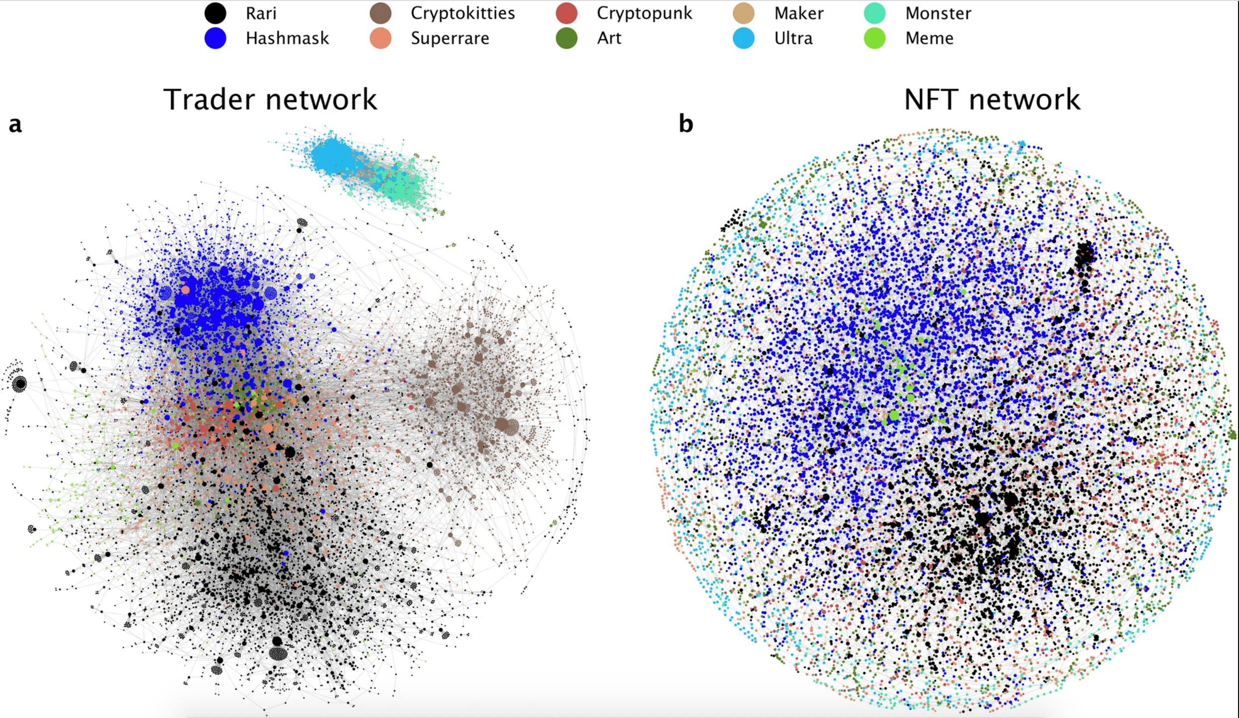 Sırasıyla alım-satım yapanlar ve NFT ağları arasındaki farkı gösteren bir rakam. Görsel: Science Report