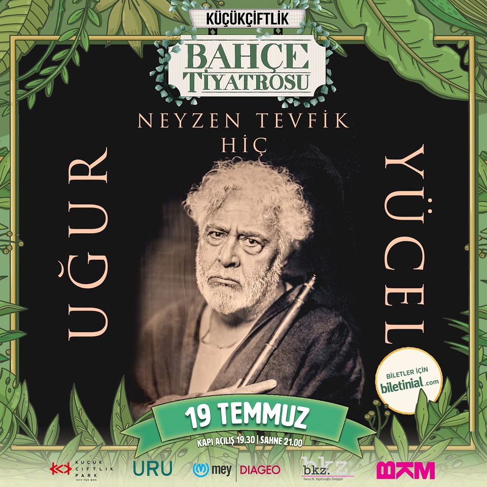 Ölümsüz neyzen ve şair Neyzen Tevfik’in hayat hikâyesini, dünyasını ve dostlarını, anekdotlar, hicivler ve şiirlerle sahneye taşıyan BKM prodüksiyonu Neyzen Tevfik “Hiç”, 19 Temmuz Çarşamba akşamı seyirciyle buluşacak.